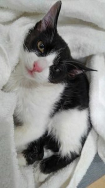 | 性別 | 猫 ♀ | 年齢 | 推定黒白八割れ 3か月齢 (2018/08/14 掲載時 ) |