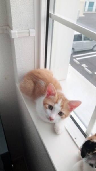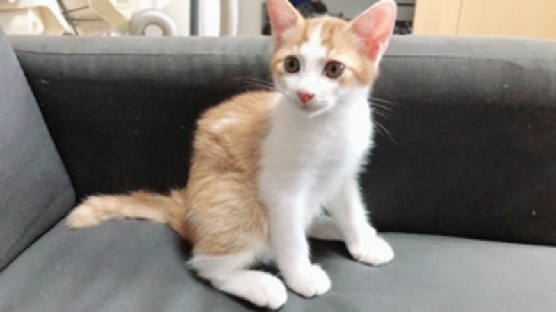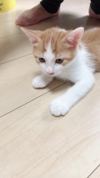 | 特徴(性格など) | 茶トラの尻尾が長い子猫です。 人懐っこく子供にも慣れているので、子供か抱いても大人しくしています。甘えん坊でお布団で一緒に寝ることも出来ます。 |