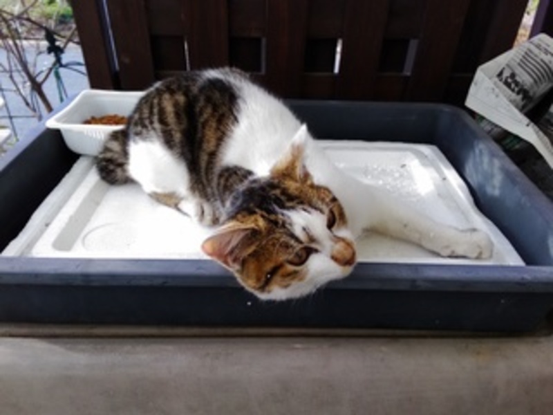 | 里親募集する理由 | 縁の下に迷い込んでニャオンニャオン鳴いている所を保護しました。我が家では既に20歳になる老猫を飼っていてその介護で手一杯なため、子猫の里親になっていただける方を募集いたします。 写真は発泡スチロールの箱の上で爪とぎをしていた時のもので、あちこちに発泡スチロールカスが舞ってますが、きれいな子猫です。 |