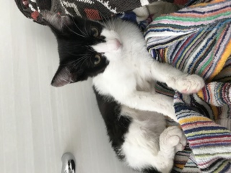 | 特徴(性格など) | はちわれ女子。兄弟にて4匹保護しました。じと目の可愛い女の子です。 | ||