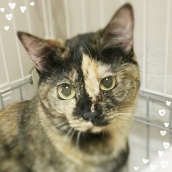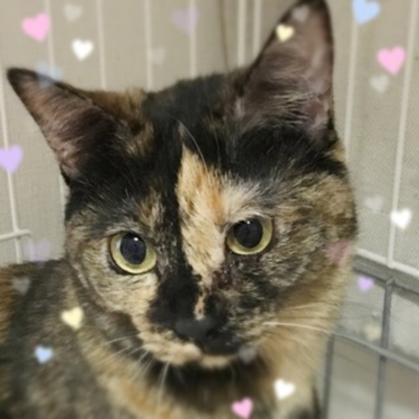 | 特徴(性格など) | 【猫の名前】響ちゃん(担当:河井) 【毛色・柄】サビ 元飼い猫ですが、多頭の中にいたため飼い主が愛情をそそげなかったので、 人馴れがまだできていません。 でも飼い猫のため愛情をそそげば必ず慣れると思います。 ペット可にお住まいの方を希望します。 恐れ入りますが、お一人暮らし、高齢者の方のみのご家庭は相談可です。 |