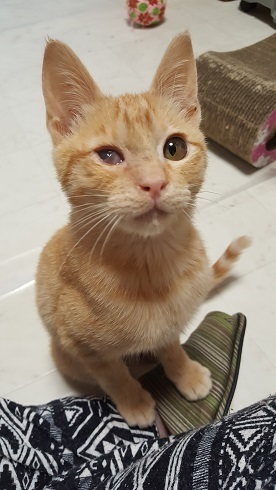 | 里親募集する理由 | 外でうずくまっているところを保護しました。 右目が膿で覆われて酷い状態になっていました。大変人馴れしていましたので、治療後募集することにしました。 |