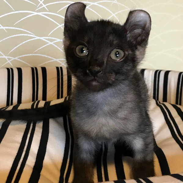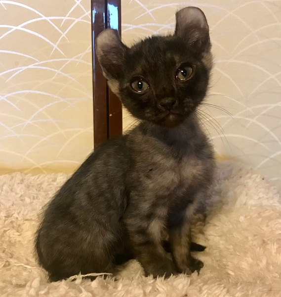 | 特徴(性格など) | 【猫の名前】ピーターくん オス(担当コガ) 【毛色・柄】アメリカンカール風 ブラックスモーク短毛 クルッと反り返った耳が特徴の男の子、エキゾチックでユーモアな感じがとても可愛いピーターくん。 アメリカンカールは猫のピーターパンと言われてるそうでそこから名前を取りました。 人懐っこい子です。 ペット可にお住いの方、お留守番の短い方、又は兄妹一緒が希望ですがお留守番が 短ければ1匹でも大丈夫です。2段ケージが必要になります |