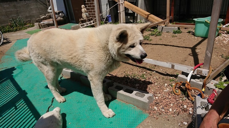 | 特徴(性格など) | 3歳牡の秋田犬、見た目は白ですが血統書での毛色は赤。 とてもおっとり大人しい男の子です。 迷子の柴犬が寄って来て離れなかった時も、優しく迎え入れそばに寄り添っていました。 人見知りもしません。先住犬とも仲良くできると思います。 |