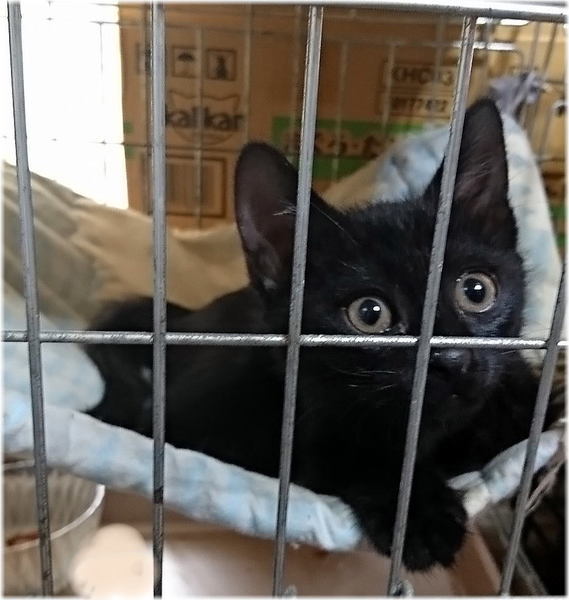 | 特徴(性格など) | 生後約2ヶ月の黒猫、元気いっぱいの女の子。 今回一緒に募集しているキジトラ猫ちゃんと兄弟です。 兄弟同士2匹でよく遊びますが、人にも慣れていて人見知りもほとんどしません。 |