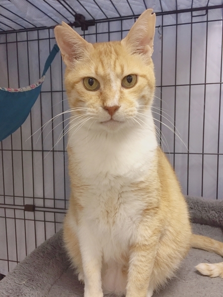 | 特徴(性格など) | 2009年生まれ(推定) 色:茶白 目ががキリリ!!イケメンなヒロシですが、 性格は、茶トラの特徴でもある穏やかで 人馴れもしている優しい猫さんです。 ナデナデするとコロンと転がり、とっても嬉しそうな表情を見せてくれるヒロシくん。人が大好きです! 保護部屋では、他の猫さんとも仲良く元気に過ごしています。 ゆったり猫と過ごしてみたい方や、 初めての猫を飼う方にもオススメします! |