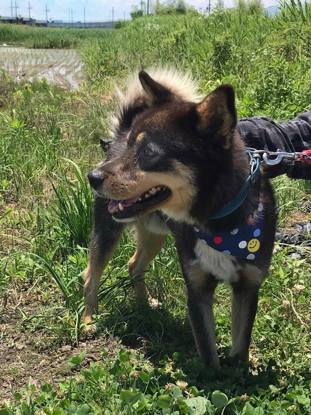 | 特徴(性格など) | 黒芝犬のミックスのスレンダーな男の子です。いかつい顔をしていますが、甘えん坊です。13キログラムです。お散歩のときに、トイレをします。 心は子どもで、抱っこしてと甘えてきます。どうか、かわいいひろふみくんに会いにきてください。 |
