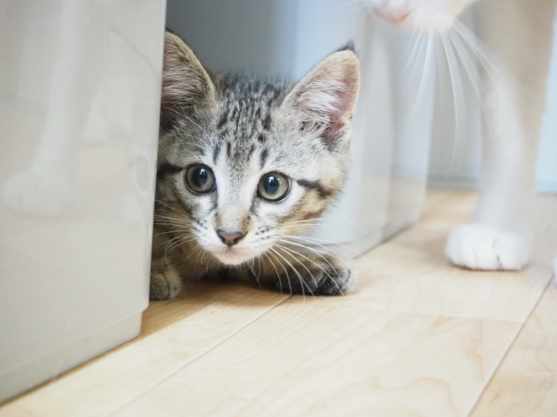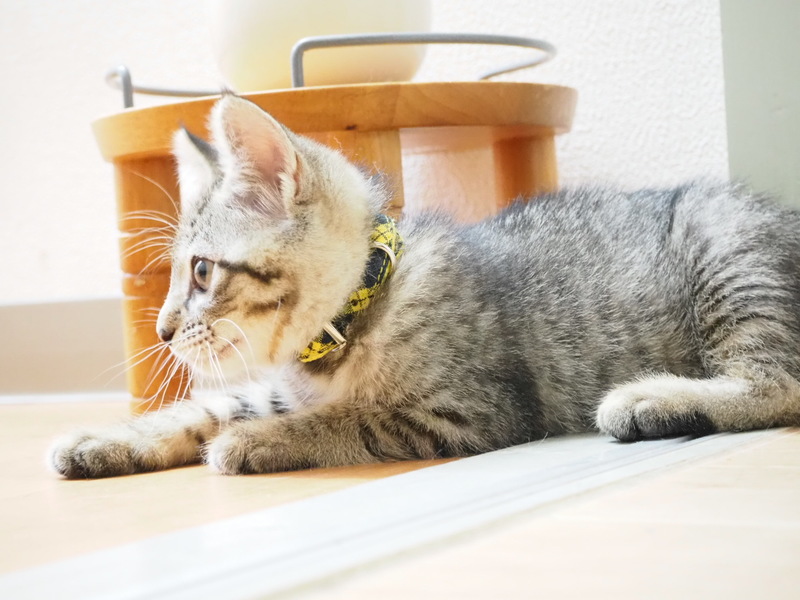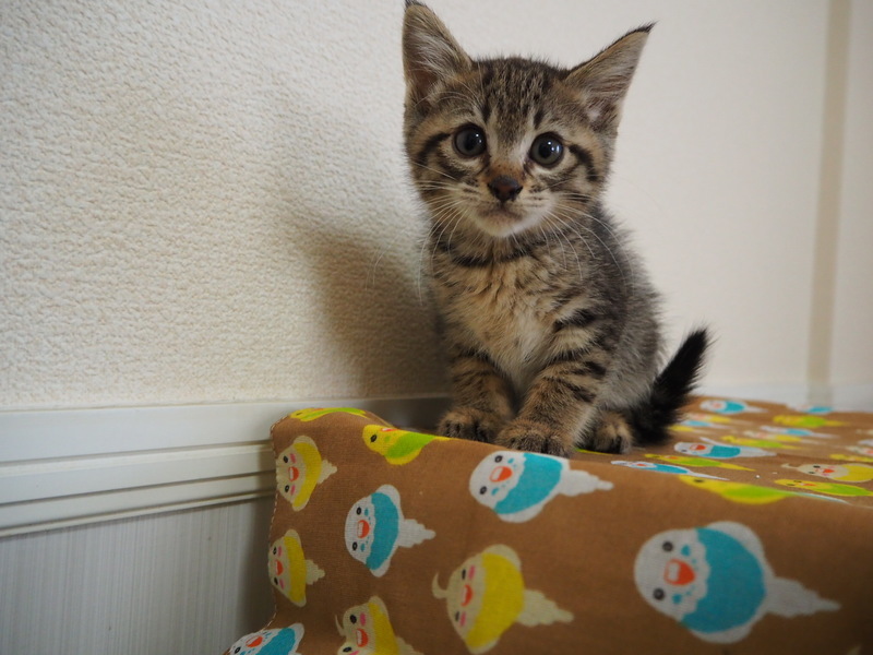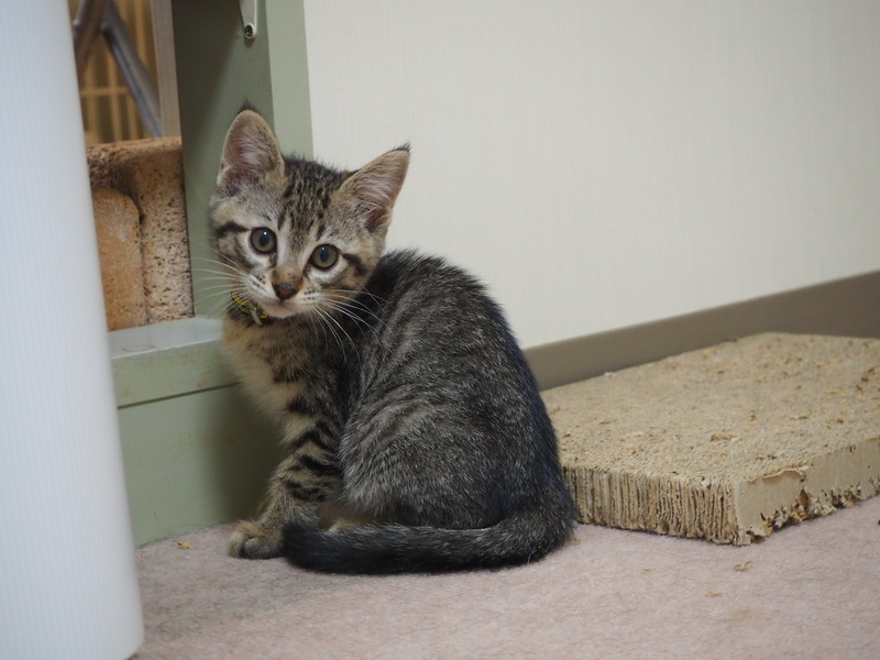 | 特徴(性格など) | キジトラ柄。元気いっぱいですが、少しこわがり。しっぽはまっすぐ長いです。 健康状態は良好。ノミ・寄生虫駆除済み。FIV(-)、FeLV(-)確認済み。食欲もりもり。1回目ワクチン接種済み。 |