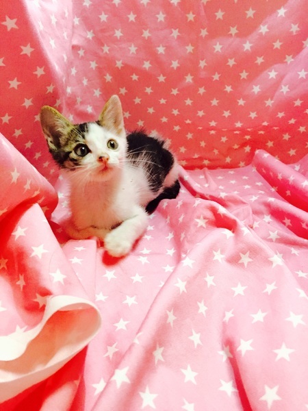 | 特徴(性格など) | 【仮名】ぐーちゃんくん 【性格】体は小さいですが、元気いっぱいで同年代の子ととじゃれてます。動きが素早いのと咄嗟の判断力が抜群です。人が歩くときは注意が必要なほど。今はいきなり抱っこするとなんや~と遊びたいのに~という顔をされます。ごはんも良く食べるのでお腹はポンポコリンです。 同世代のにゃんことのお迎えを希望します♪ |