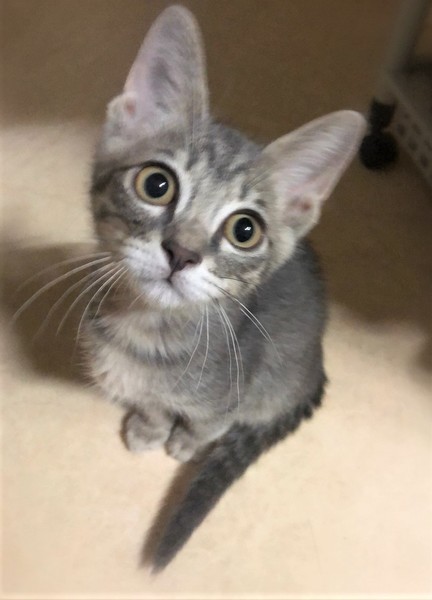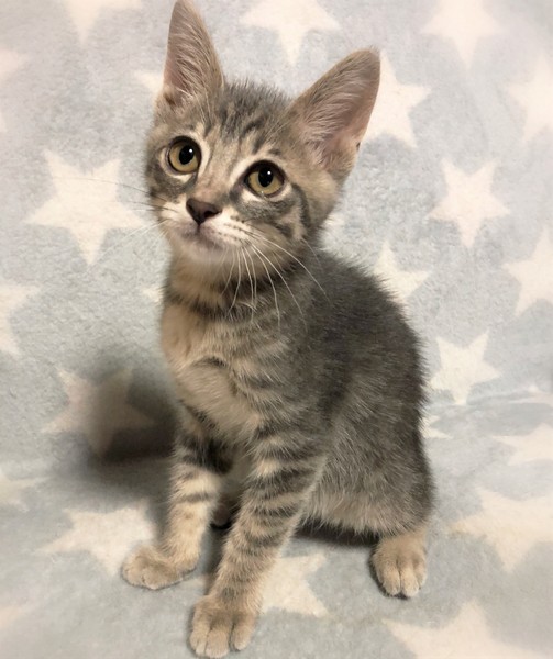 | 特徴(性格など) | 肌色がかったグレーしましまの男の子。 初の場所や初対面でも好奇心旺盛。全く怖がる事のない大らかさん。 のんびりした性格で、他の描とも仲良く過ごしています。 |