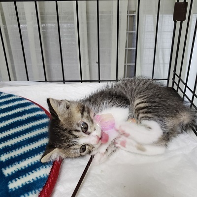| 里親募集する理由 | 母猫とはぐれたのか1匹で車の通りの激しい道路に出ていくのをみて、危険なので保護しました。 | ||