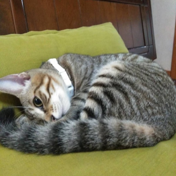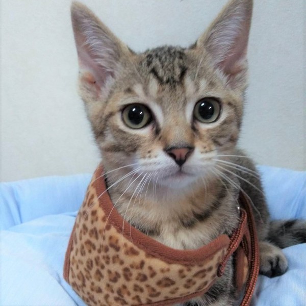 | 特徴(性格など) | ちょっとビビリな子です。小顔で長く伸びた尻尾、手足。両手の黒っぽいラインが印象的です。よく見るとリンクスティップという猫の耳毛があってとても可愛いです。エル君と兄弟です。先住猫、ママ、兄弟と仲良く暮らしていますので、社交性あります!賑やかなお家がいいですね。 | ||