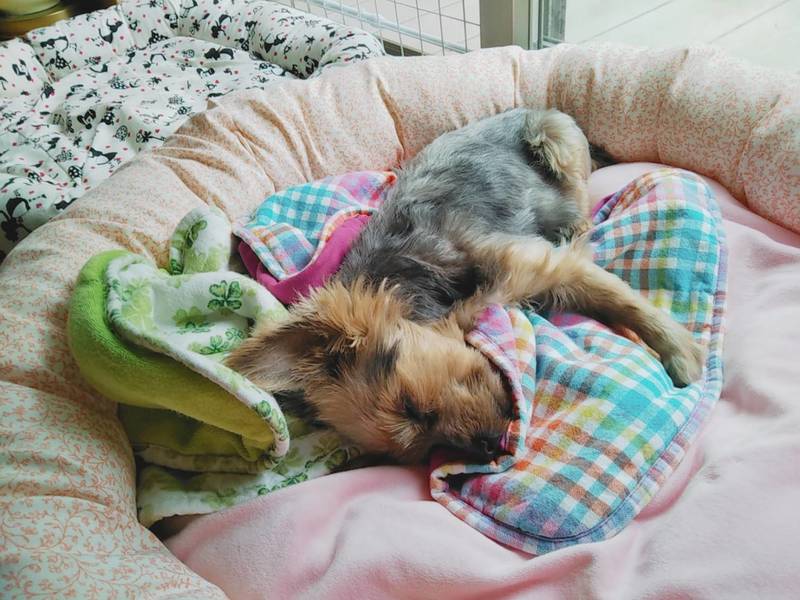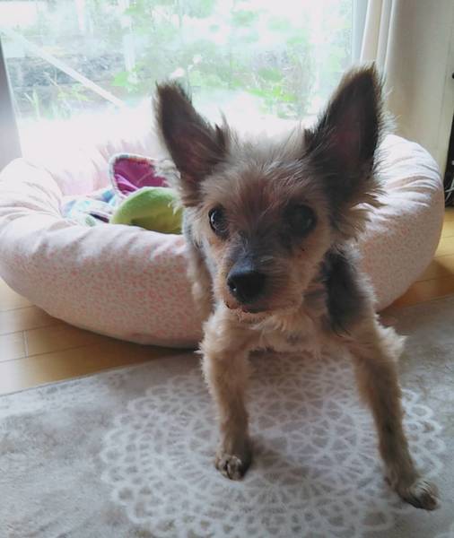 | 特徴(性格など) | 静(ちか)ちゃん [仮名] ・ヨークシャーテリアの女の子 ・年齢16才 ・体重2.1kg ・フィラリア(ー) ・狂犬病予防接種済 ■性格 年齢でいうとハイシニアの静(ちか)ちゃん。仮家に来た時は、かなり体力を消耗していたようで数日はあまり動けませんでした。 しかし、たっぷりと休息し体調を整えたら、みるみるうちに動けるようになってきました。 散歩も、晴れの日は毎日行きます。歩く速度は年相応の、ゆっくりゆっくりです♪それでも、ちかちゃんなりにスピードがついてきたように思います。 散歩が元気の源になっています。 ご飯は、フードを少しふやかしたものと肉や湯で野菜のトッピングを食べています。たまに気分が乗らない時もありますが、基本的に完食してくれます。 シートの一応認識はあるようにも感じますが、出来ない時の方が多いので、ちかちゃんがしそうな所にシートを敷いておくようにしてます。 人間と同じで年を重ねていくと、今まで出来ていたことが出来なくなっていくお年頃のちかちゃん。 目に見えて懐いてくるわけでもないです。でも、仮家にきて1ヶ月半が過ぎなんとなく仮家族を認識してきてくれています。マイペースに日々を送っている姿に、なんともいえず癒やされます。今のありのままのちかちゃんを包み込んで下さり、最期まで大切に寄り添ってくださる、優しい本当のご家族をお待ちしております。 ・新しい環境・家族に馴染むまで、長い目で見守ってください。 ・暑さ・寒さに留意し、室内の温度管理をお願いします。 ・環境の変化でトイレの失敗があると思いますが、 おおらかな心で受け止めてください。 ・必ず室内飼いをお願いします。(半外飼いも不可) ・家族と一緒のスペースに完全フリー飼育をお願いします。 ・必ず脱走防止対策をお願いします。 |