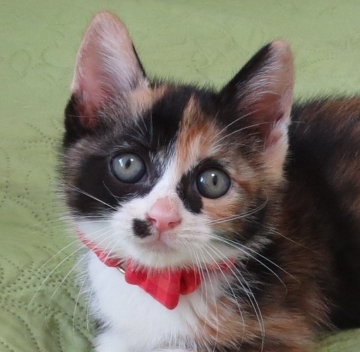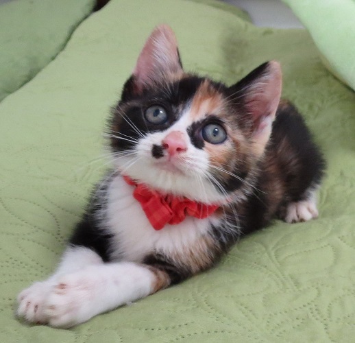 | 特徴(性格など) | 白キジのルイくん、キジ白のジルくんとの3兄妹です。 保護された時からよく食べて元気で、手のかからない、いかにも三毛という感じのチビさんでした。 三毛柄が個性的の出ているので美人に見えないですが、実は顔はとても可愛いです! 三毛独特の賢い女の子で、強く・正しく・美しく・・・! |