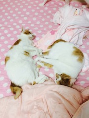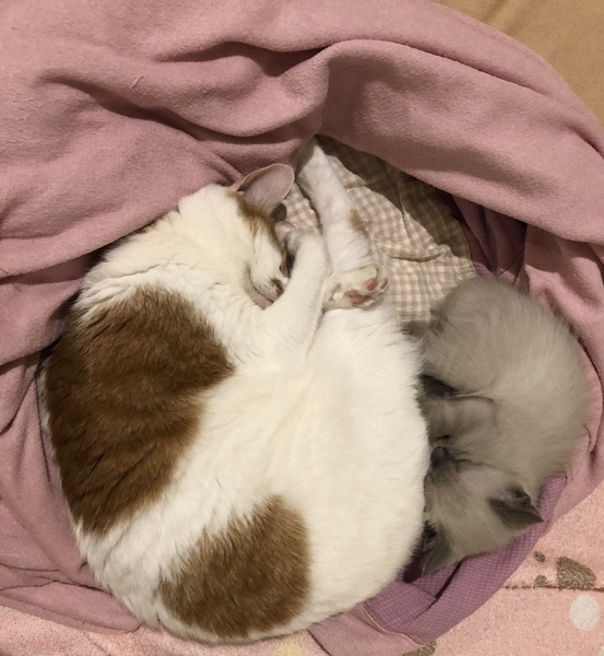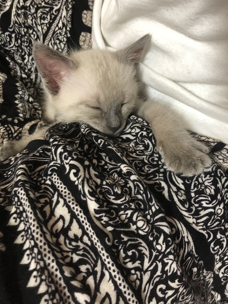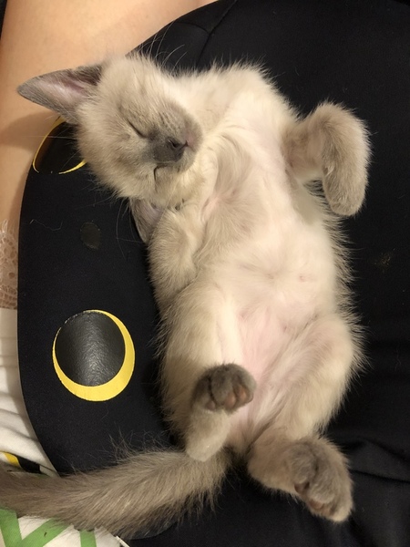 | 特徴(性格など) | シャム柄の可愛い女の子です。 子猫らしく無邪気でおてんばな部分もありますが、全く人見知りしない人間大好きな子です。 お膝の上で寝たり、一緒に寄り添って寝るのが好きです。 遊ぶことがとても好きで、靴下でも玩具にしちゃいます。 爪切りもトイレも完璧です。 兄弟がいないため、遊びがヒートアップしすぎると遊んでいる手を甘噛み(本気噛みは一度もしたことがありません)してしまうことがありますが、駄目だよと言うとすぐに口から離します。今頑張って練習中です。 他の猫とも仲良くでき、邪見に扱われても一生懸命遊んでもらいに行っています。 |