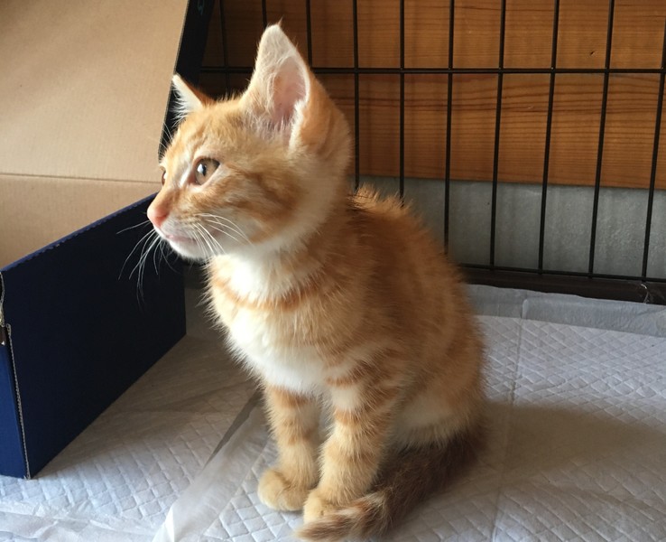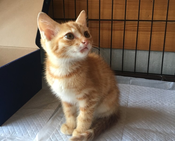 | 特徴(性格など) | 茶トラ色のシッポがまっすぐな男の子です。 人に撫でられることが大好きな甘えっ子。おめめクリクリで整った顔をしています。 人が近寄るだけでゴロゴロ甘える姿がとても愛らしいです。 |