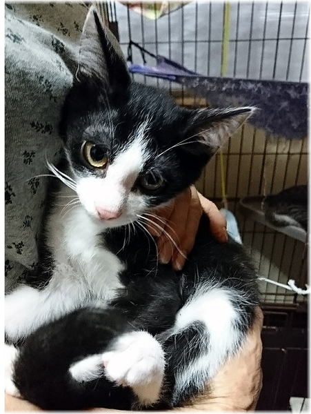 | 特徴(性格など) | 白黒できれいなハチワレの男の子♪ 初めは人見知りはしますが、割と人慣れはしています。 まだ子猫なので新しい環境に慣れるのも早いと思います。 |