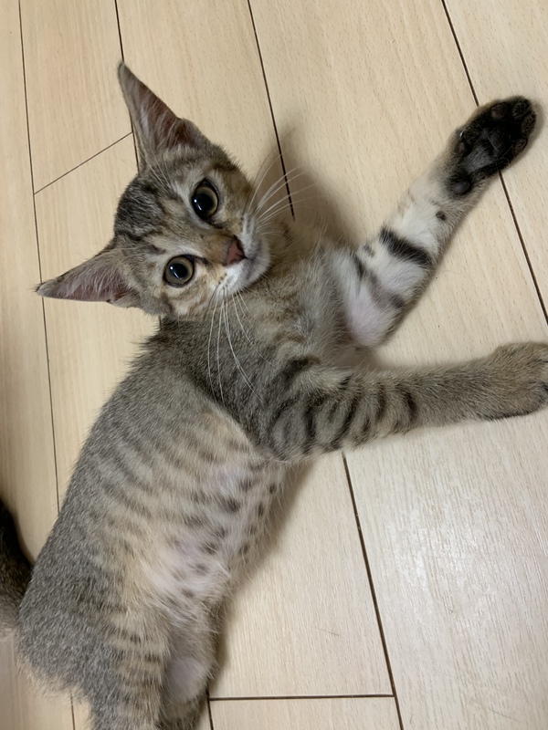 | 特徴(性格など) | キジトラ ♀ エイズ白血病 陰性 甘えん坊、人馴れ 猫馴れ問題なし やんちゃ盛りで愛嬌たっぷり 病院では大人しく我慢強いです |