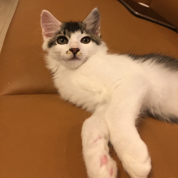 | 特徴(性格など) | キジ白というかグレー白というか、キジ柄はほぼ眉間の縞柄だけです。 コロンとしたボディにふわもこのウサギのような毛並み、本当に愛らしい子猫です。 元気いっぱい、人も猫も大好きですぐにお友達になれます。 顔を近づけると手を広げてチューしてくれます。 食欲旺盛でペロリと人の分も食べてしまおうとするのですが、胃腸が丈夫ではなく、ゆる便になりがちです。 そしてお尻の毛にウンチつけて歩いてしまったり。 ママは今もケージ生活ですがビビリで人が怖いようです。すでにミミシロとは互いに親子の認識もないと思いますが、じっくり待ってくださる方であればペアで譲渡もご相談したいです。 健康状態 とても健康で元気です 下痢が続き、乳糖不耐性だと判明しました。猫用の粉ミルクにも乳糖は含まれてるそうです。 ふつうのウェットフードやドライフードでは便は安定しています。 母猫のウイルス検査(エイズ・白血病)陰性 ワクチン(1回) 駆虫 検便 シャンプー 爪切り |