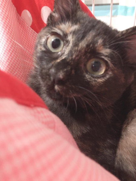 | 特徴(性格など) | サビ柄の3ヶ月の女の子です。 性格はシャイだけど慣れてくるととっても甘えん坊になります。 1匹でこの子だけを可愛がってくれる方募集します。 |