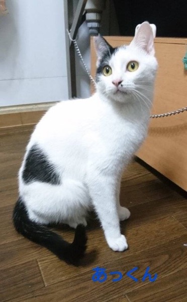 | 特徴(性格など) | 仮名「あっくん」 ワクチン済み、駆虫済み、ウイルス検査白血病、エイズ共に陰性 白黒の男の子 おっとりした優しい性格の男の子です。 抱っこも撫でられるのも大好きですり寄ってきては「撫でて」と甘えてくるとても可愛らしいあっくんです。 初めての方にも飼い易い いい子です。 |