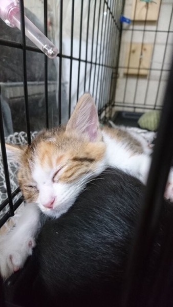 | 特徴(性格など) | 仮名「みこちゃん」 ワクチン済み、駆虫済み、ウイルス検査白血病、エイズ共に陰性 三毛の女の子 保護時はとても痩せて小さかったみこちゃんですが今ではぽんぽこりんのお腹が可愛い女の子になりました。 人馴れも大丈夫。猫ちゃんとも仲良しの性格の良い子です。 まだ小さいので当会での月齢が近い子とお迎えしていただけたらと思います。 出来ればお留守番が短く子猫からの飼育経験がある方を希望します。 |