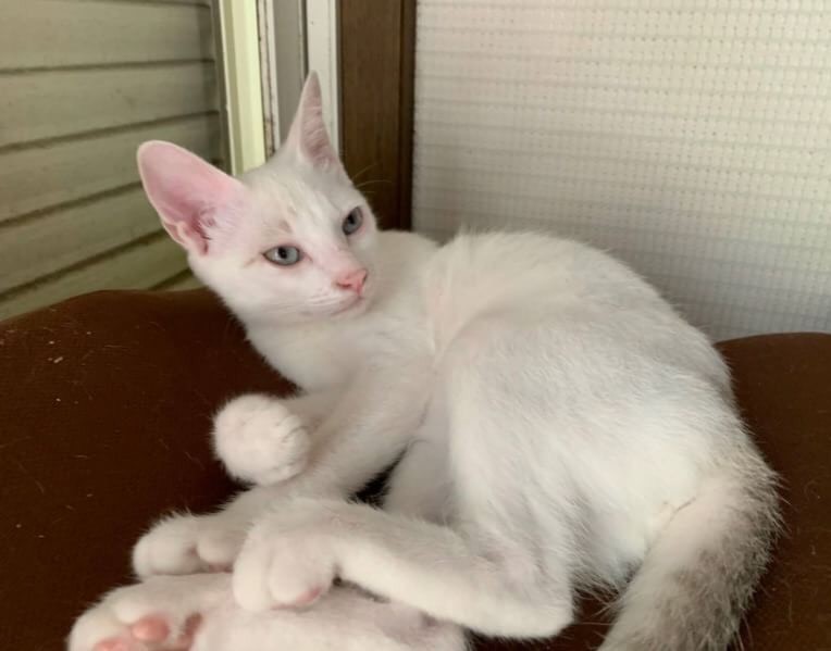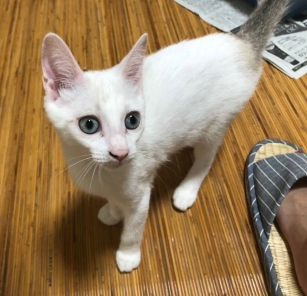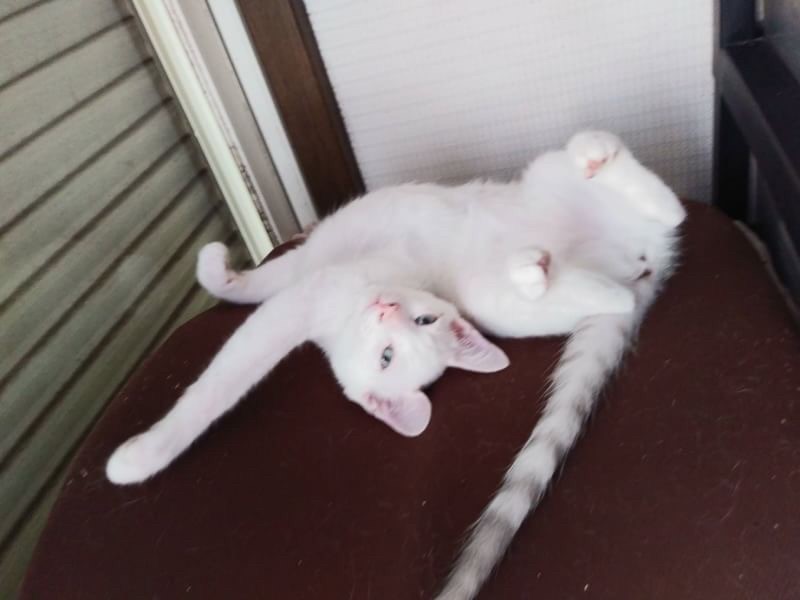 | 特徴(性格など) | 食欲旺盛で周りを気にせずなマイペースな甘えっコ「ユキ」ちゃん♡ 兄弟たちが遊んでいても、気にせず、お気に入り場所で堂々と爆睡♪ 現在、一日2回、ロイヤルカナン成長後期・子猫用を与えています。 <推定誕生日:5月中旬> |
