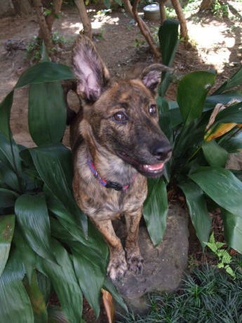 | 特徴(性格など) | 【名前】 ユウちゃん 【犬種】 雑種、ブリンドル 【性別】 メス、避妊手術は9月下旬頃の予定(避妊手術後に正式譲渡となります) 【年齢】 推定4、5か月位 2019/4月頃生まれ 【体重】 7.9キロ 【フィラリア】 【お預かり場所】 東京都江戸川区 【経緯】 鹿児島と宮崎の県境を兄妹犬と共に放浪していた所を収容され現地ボランティアさんがレスキューし、その後関東で医療処置、ケアを行いながら里親募集をしています 【譲渡範囲】 関東近県・要相談 (お見合い時にご家族様揃ってこちらまで来て頂ける方) 【その他健康状態】 混合ワクチン6種2回、レボリューション、病院で耳洗浄と爪切り 【性格・しつけ等】 とても人懐っこく、誰にでも寄っていきます。勘がよく、賢いです。 お散歩大好きです。おもちゃ等は譲らずに、可愛いお顔で鼻にしわを寄せてガルル~と言っています。 ご飯前と遊び中はよく吠えています。柴犬のような高くてよく通る声です。運動神経がよく小回りがききます。 室外機の裏やピアノの上、猫が通ったところを通っています。 シャンプー、ドライヤーが苦手ですが、毎日足を洗っていて、またナナちゃんのシャンプー時に一緒にいるので、どちらも少し慣れてきました。 ウンチをしながら360度回転します。 ・ご飯は1日3回、ウンチは1日3回+αしています。朝夕は室内+庭、昼間(時々)と寝る前に室内シートでしています。 ・ウンチを放置すると、かじったり遊んだりします。 ・猫と同居していますが、猫トイレはあさります。 ・夜はケージで寝ていますが朝も夜もとても静かです。(ケージ内のトイレは使わずです。) ・週2度程、数時間お留守番をしています。出かけるときも帰宅時も、2人共いない位におとなしいです。 ・何でも食べて、何でもかじります。 |