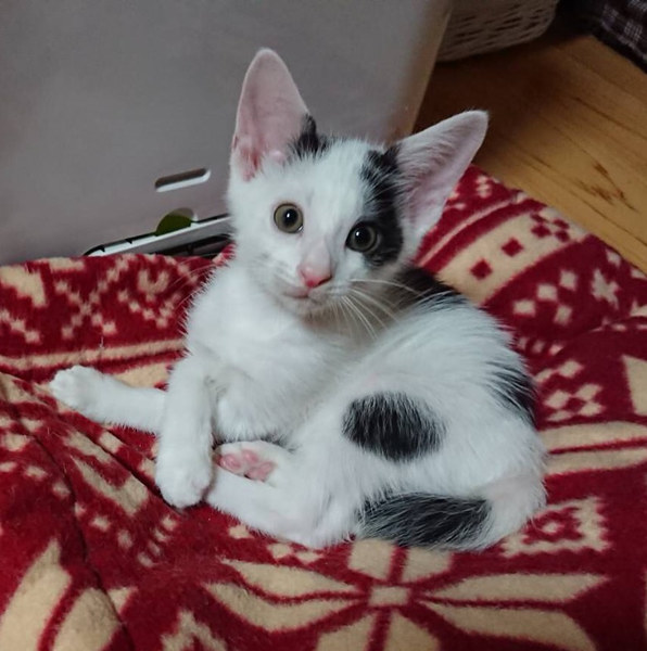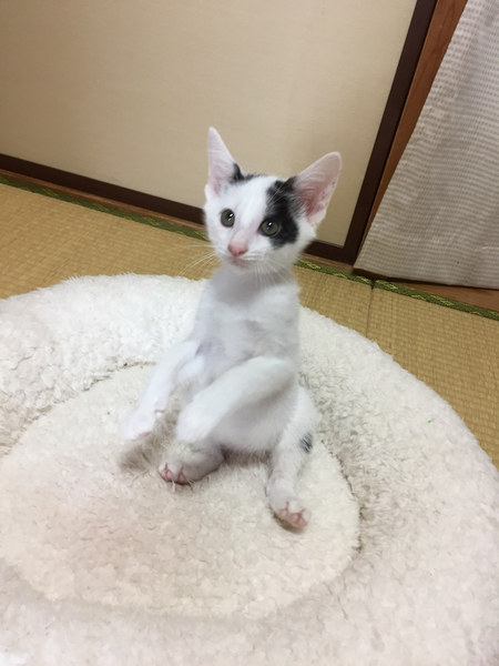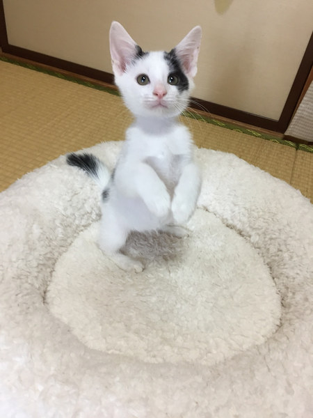 | 特徴(性格など) | ボクちんは、コボくんだおー あにょね、ボクは、まだ、ぱいぱいを飲んでいた時期に、お母さんと逸れてしまったんだ 怖くて怖くて、ピャーピャー鳴いていたら、連れて来られたのが今のお家だお ボクは、昔の記憶がにゃくにゃっちゃったんだ ボクは、人間の子供だったんだにゃ ―――――――――――――――――――――――――――――― 人懐っこくて、まるで自分の事を人間だと思っているようなかわいい白黒猫ちゃんのご紹介です。 まだ乳離れしていない小さな時に、お母さん猫やキョウダイ達と逸れてしまった所をレスキュー致しました。 小さな頃から人の手で育てたので、全く、人に対しての警戒心がありません。 自由奔放に、家の中を駆けずり回っています。 とても飼いやすい子なので、猫飼い初心者の方にもおススメできます。 小さなお子さんがいるご家庭でも大丈夫です。 半日ぐらいのお留守ならばできますので、パートをお持ちのご家庭でも問題なく迎えていただけます。 ケージなどは、必要ありません。 普通に家猫生活をスタートさせてください。 コボちゃんには、キョウダイはおりませんが、同じく一緒に保護生活を送っている同じぐらいの年の子達がおります。 同居生活に慣れているので、2匹飼いのご希望の方は、ぜひともご一緒に迎えてください。 特に、子猫の場合、2匹飼いの方がお互い遊びあって過ごして行くので利点が多いです。 かわいい子なので、ぜひ、よろしくお願いします。 |