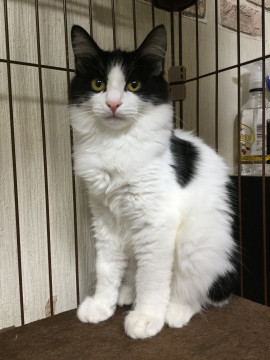 | 特徴(性格など) | 白黒中毛の男の子です。 慎重な性格ですが、撫でられるのが好きな奥ゆかしいタイプの猫さんです。 毛が長いのでふわもこで手足がずんぐり見えるのがかわゆいです。 ハチワレ好きの方いらっしゃいませんか☆ |