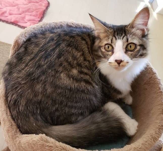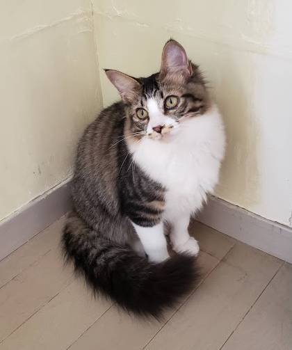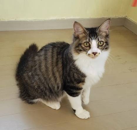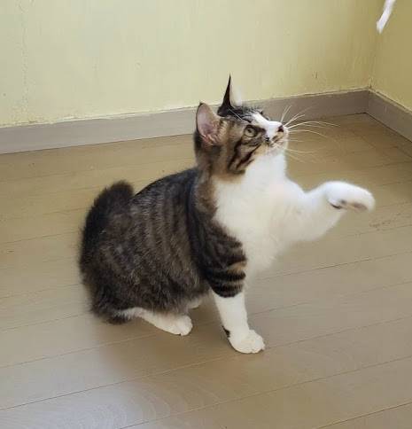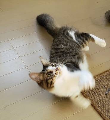 | 特徴(性格など) | キジ白、尻尾ふさふさで長いです。 全体にふさふさで体も大きく活発な子です。 猫じゃらし大好きで、日々ジャンプ力を磨いています。人馴れ抜群で、膝にのってきたりします。 抱っこもOK。甘え上手です。 仲良し兄弟のめろん君と一緒のご縁を希望します。 のみ取り済 駆虫済 トイレ躾済 3種混合ワクチン済 去勢手術済 猫エイズ・白血病ウィルス検査はともに陰性 |