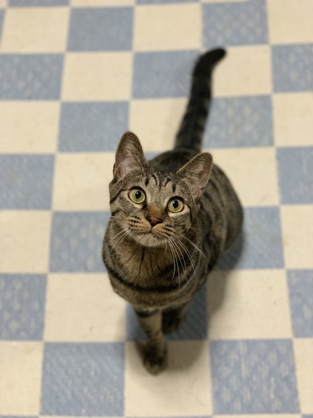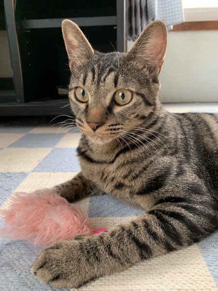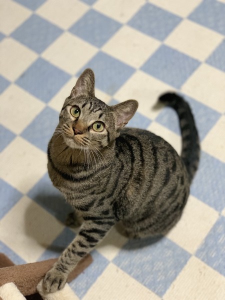 | 特徴(性格など) | 綺麗なキジトラ柄、尾尻真っ直ぐ長いです。ハンサムボーイ。 保護時から香箱座らして、抱っこ出来る位おとなしく人馴れしてます。 他の猫ちゃん共仲良しできます。トライアルあります。 なるべく、先住猫ちゃんいる方希望します。1匹飼育の方はご相談受けます。 |