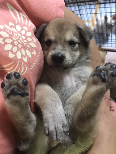 | 特徴(性格など) | 子犬らしく元気いっぱいです。 ※混合ワクチン後の譲渡になります。 ※室内飼育・生後6ヵ月頃までの不妊手術の実施が譲渡条件となります。 ※子犬の為、お留守番時間が3時間以上あるご家庭・60歳以上の方のみのご家庭からのご応募はお受けできません。 |