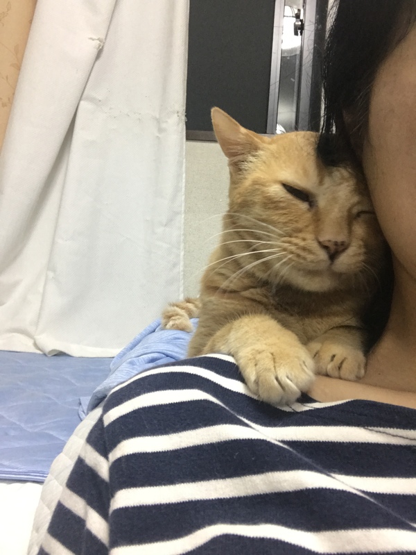 | 特徴(性格など) | マル(仮名) 茶トラ。真っ直ぐな長いしっぽ。 怖がりさんの為、信頼を得るまで、かなり猫を被りますが、超甘えん坊で、スリスリベタベタ。抱っこもなでなでも大好き。 血液検査、白血病、陰性。エイズ陽性。 |