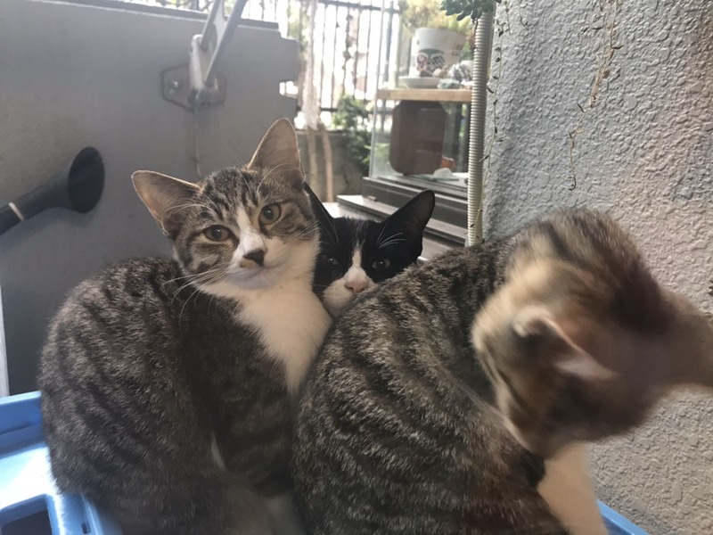 | 里親募集する理由 | マンション一階庭付きの我が家のベランダは、野良の母猫にとって安心して出産できる環境のようで、7月に3匹の子猫が産まれていることに気づき、その後ベランダでエサをやり、保護しています。 ほとんど庭とベランダで過ごしており、食事も欠かさず与えているので人に慣れています。 毎日3兄弟(姉妹?)で仲良く遊んでいますが、このままだと近所迷惑にもなり、我が家では手狭で飼うことが出来ないので可愛がってくれる里親さんを探しています。同じくキジトラの“さくら”、黒白の“タケル”も一緒に引き取ってもらえたら尚嬉しいです。 3匹の写真の左が“みなみ”です。 里親さんが見つかり次第、ワクチンを接種してからお渡しする予定です。 |