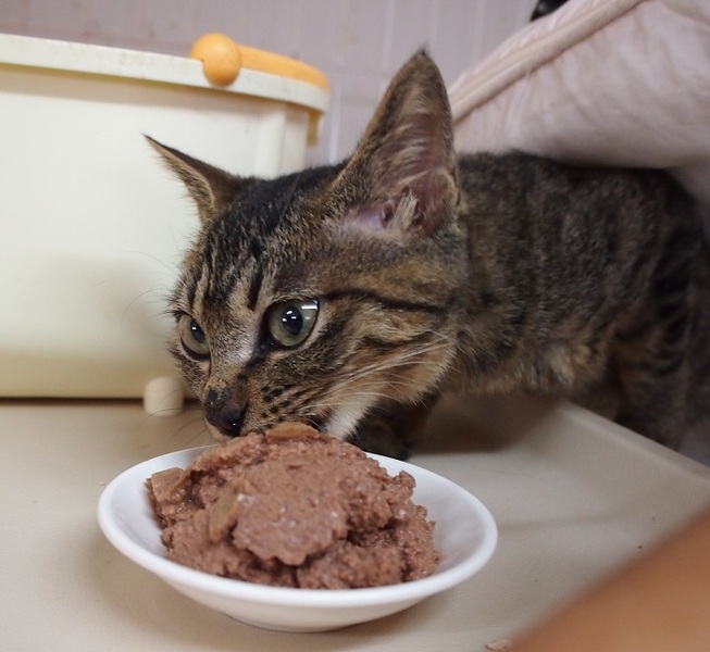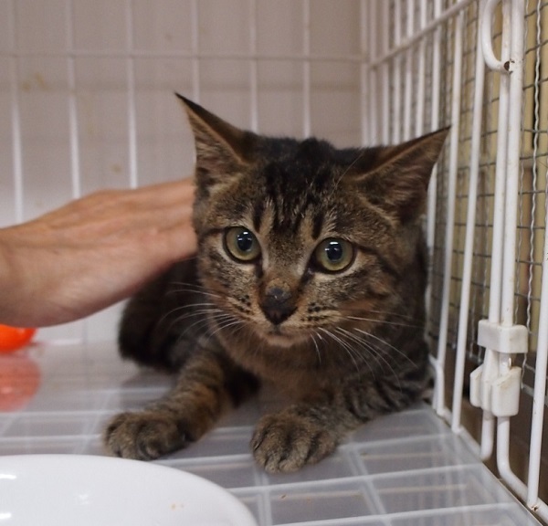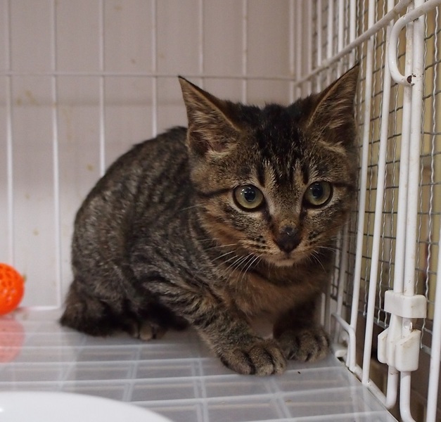 | 特徴(性格など) | キジトラの女の子です。 保護当初は警戒心が強く、フーシャーと怒っていましたが、大分馴れてきました。 シャイな感じが、とっても可愛いです。 健康状態良好 ウイルスチェック(エイズ・白血病)マイナスです。 |