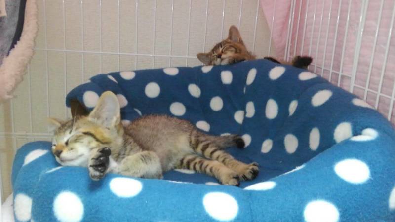 | 特徴(性格など) | きじとらの 兄妹です。 男の子 たっくん 女の子 みくちゃん お目め パッチリとても 愛らしい子猫 コロコロ遊び 食べて 寝ます 健康状態 良好 ウイルス検査 陰性 駆虫済 今 一番かわいらしい時です! |