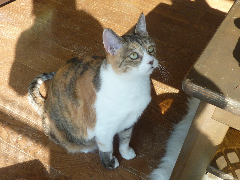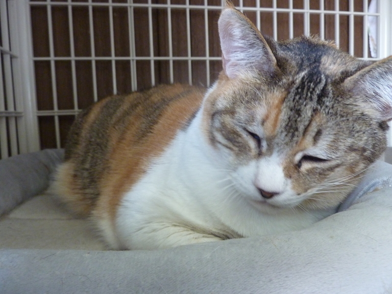 | 特徴(性格など) | 三毛猫のメス(茶と黒ははっきりした色というよりちょっとぼかしたような色) おとなしい性格です 外生活が長かったため、猫風邪の後遺症が少し残っています (目が時々涙目、鼻呼吸の音が少しします) 頭が小さく、足も細いですが、体重は5キロと、女の子にしては大きい子です |
