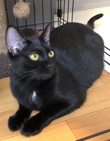 | 特徴(性格など) | 黒猫ですが胸とオナカが白いです。 だいぶ緊張がとけてきて、リラックスしてくれるようになりました。 遊ぶのが大好きで、おもちゃにくいつき、他の猫に渡さない時もあります。 エイズ白血病陰性。 現在体調安定しています。 |