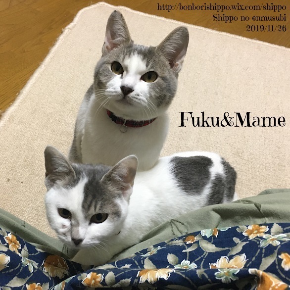 | 特徴(性格など) | 仮 名:福/豆 保護日:2019年11月 性 別:オス/メス 毛 色:灰白 誕生日:2019年5月(推定) 福♂は人懐こくて甘えん坊で食いしん坊。 豆♀は若干怖がりだけれど、基本性格は福と一緒で慣れれば甘えるし、食いしん坊です。 ふたりとも野良ちゃんが産んだ子です。 FIV陰性、FeLV陰性、駆虫済み、健康状態良好。 |