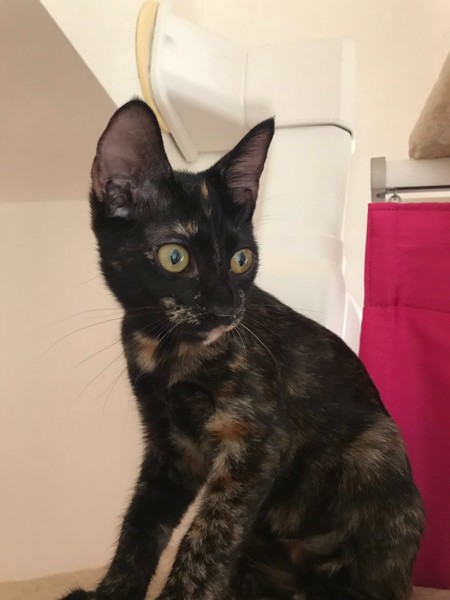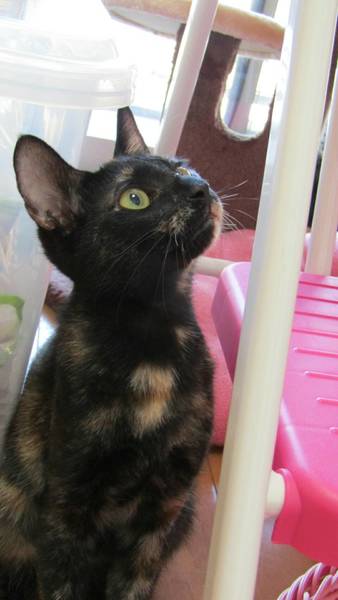 | 特徴(性格など) | サビ(少しキジ入っています)。肉球がチョコレート色の中にピンクの部分があってカラフル! とっても温厚で、甘えて短くキャッキャッと鳴くのがすごく可愛い(*´-∀-) 3秒でゴロゴロいってきます(*´-∀-) 甘えん坊で、少し甘噛みする癖が出てきましたが、しつこくはありません(可愛くカプッって噛まれたらラッキー!と思う程度です^^) きょうだいのしーちゃん・くーちゃんと今は元気に走り回っています(^▽^)/ 一匹でも先住さんがいても大丈夫だと思います。 エイズ&白血病共に陰性。 |