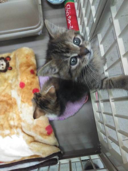| 特徴(性格など) | ふわふわ。 キジトラの女の子。 元気盛り盛り。 食いしん坊で甘えっ子。 ちょっぴりお転婆。 トイレ完璧。 |