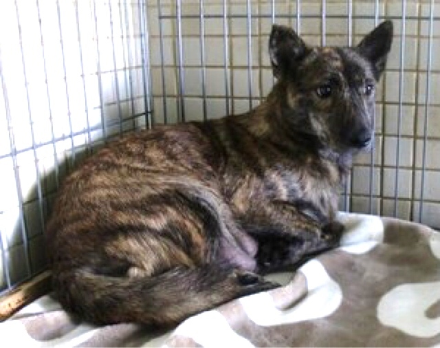 | 特徴(性格など) | まだ4歳位、可愛い黒茶のトラ柄ブリンドル、怖がりさんの女の子が助けを待っています! 長崎県諫早市内にて多頭飼育、広い敷地で放し飼いで餌やりだけされていた子達の中の1匹になります。不妊をせずに頭数が増えて手に負えなくなったとの事で出産した子犬達と一緒に管理所へ持ち込まれました。 (持ち込む時に10種混合ワクチン、フィラリア血液検査→陽性だったので投薬、ノミマダニ駆除のプラクティック投与は済ませてあります。) ※子犬達は無事里親様が決まりました。 生まれてから、一度も首輪もした事が無く、人と一緒にリードを付けてのお散歩もした経験が無い子です。ご飯だけ与えられ、撫でたり触れ合ったり、人からの当たり前の愛情を知らぬまま生きてきました( ; ; ) 親子離れ離れになりますが、でも、そんな環境のままでいたより、良かったと考え、この子の幸せを、温かい本当の家族を見つけたい!と願っております。 人と暮らした経験が無い上に収容され、何もかもが初めての環境になるので無理もありませんが、可哀想に収容当初はとても怖がっていました( ; ; )大人しく臆病で、ひたすらゲージの中でジッとしていて、撫でさせてはくれますが、人前でご飯を食べる事が出来ませんでした。優しい職員さん方が、大丈夫、怖くないよ、幸せになれます様にと、毎日触れ合いながら、一生懸命にお世話してくださっているお陰で、警戒しながらも少しずつ前に出てきたり、やっと担当の職員さんの手から食べてくれる様になったそうです!♡ ご飯を持って行くと舌をペロペロするそうです(^^) でも人に馴れるまではまだ時間を要すると思われます。 見た目の推定になりますが体重は10〜13キロ前後位でしょうか。 まだ若い子ですし、色々不安で怖い事ばかりなのでしょうから、人間が焦らずゆっくりゆっくり長い目で見守りながら、根気よく愛情を持って接すれば、いつかきっと!新しい家庭に馴染んでいけるのでは、と思います。 広い心で長期戦ドンとこい^_^と仰って頂ける方、まだ怯えていて不安気なお顔のこの子を、いつか尻尾フリフリニコニコの笑顔にしてくださる方、いらっしゃいませんか?どうぞ宜しくお願い申し上げますm(_ _)m ⭐️必ず室内飼育で、お早めに避妊手術をする事が可能な、なるべくお留守番が少ない、沢山優しく触れ合っていただけるご家庭。 ⭐️ 首輪、胴輪、リードをつけた経験が無い子です、お散歩の練習はこれからになります! 室内でのトイレの躾も1からとなります。 当分の間は何かと手がかかり大変だと思いますが覚悟と理解で受け入れて下さる方。 ⭐️犬の飼育経験があり愛情を持って犬をしっかり躾することが出来る方、お散歩や運動に充分時間をあてられる方、場合によりトレーニング教室なども視野に入れて考えてくださる方。 何卒宜しくお願い致します。 ※狂犬病予防接種実績はありません。フィラリア治療、避妊手術も含め、譲渡後に里親様にお願いする形になりますm(_ _)m 以上の点を踏まえ、この子の置かれている状況をご理解のうえ、全て受け入れ寄り添っていただけるご家庭で可愛がっていただきたいと祈っております。 収容された全ての子達は身勝手な人間による被害者であり、何も悪くありません( ; ; ) 家族の一員として生涯寄り添いながら大切にしてくださるご家庭とのご縁が結ばれ幸せになれます様に。 1日も早く温かな愛情を目一杯注がれながら、元気に幸せに生きてほしいです。人間より遙かに短い生涯です。 冷たく硬いコンクリートの上、檻の中で、命の期限が迫る中、ひたすら優しい素敵な里親様を待ち続けています。 悲しい事にこの世の中、人間に飼われないと犬は生きていく事が出来ません。 捨てる飼い主、探さない飼い主、医療にかけない飼い主、虐待する飼い主…飼い主を選ぶ事も出来ません。まだまだこれからのこの子を生涯大切に可愛がって下さる優しい素敵な里親様、どうかお願い致します。きっと、必ず最高の家族になります! もうこれ以上悲しい辛い目に遭わせたくありません。本当の愛情、温もりを知ってほしい、辛かった分、寂しかった分、まだまだこれからの犬生はのびのびと幸せいっぱいに愛し愛されて、生きてほしいと願っております。家族の一員に迎え、愛情溢れるご家庭で一緒に暮らして頂けませんか。 何卒宜しくお願い致します(๑•ᴗ•๑)♡ ◆健康状態 ※持ち込む時に10種混合ワクチン、フィラリア血液検査→陽性だったので投薬、ノミマダニ駆除のプラクティック投与は済ませてあります。 管理所では収容するのみ、になり、健康診断などは一切行っておりません。 トライアル制度もございません( ´•̥ו̥` ) 例えどんな病があろうとも、この子の全てを丸ごと受け止め終生愛情飼養して下さる方のみ への譲渡となります事をご了承くださいませ。 何卒宜しくお願い申し上げますm(_ _)m ⭐️収容動物の健康面での保証(性格も収容中に職員が見て接した分かる範囲となります