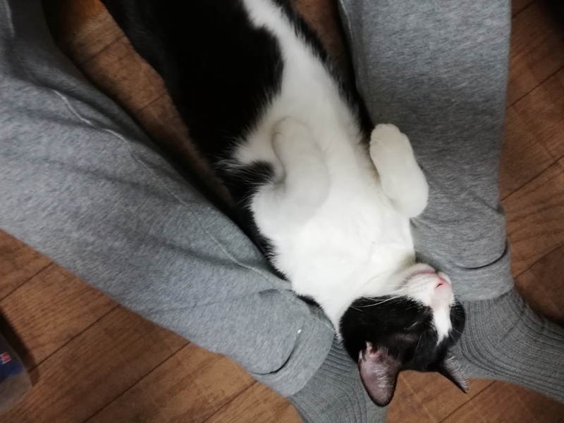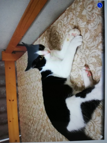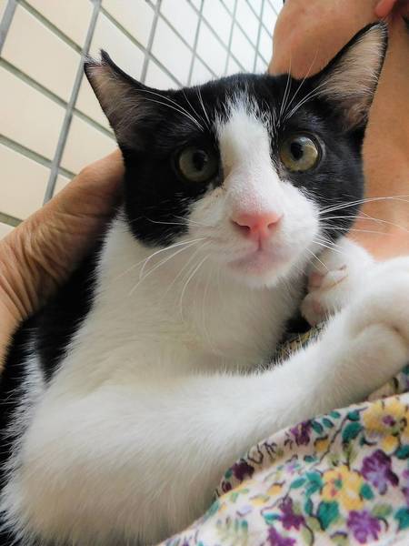 | 特徴(性格など) | 色は黒白。4匹兄弟ですが、一番人間が好きな甘ったれです。いつも抱っこされていたいので、座るとよじ登って来ます。誰とでも仲良く出来て犬との生活も大丈夫です。 | ||