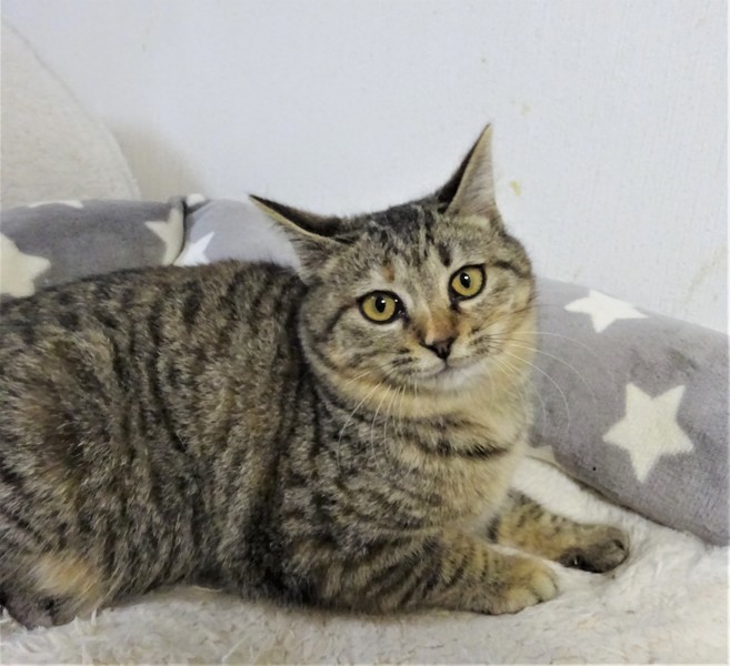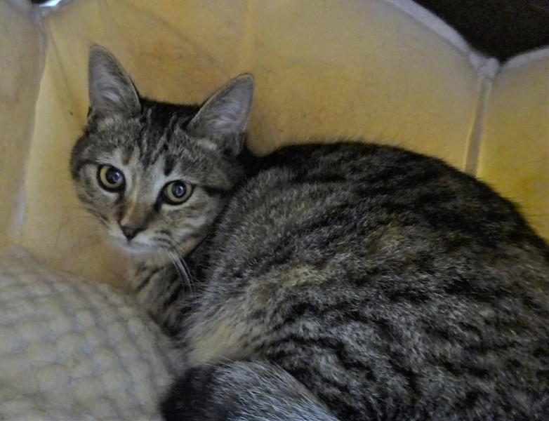| 特徴(性格など) | 仮名: マギーちゃん(メス) 毛色: キジトラ 性格: 威嚇もなく、抱っこするとトロンとしてくれます。 人に捕まるのが好きではないので、逃げますが、抱っこしてしまうと大丈夫です。じゃらしには燃え、ジャンプが凄いです。 おもちゃも大好き。 兄弟と一緒か、1頭飼いでも大丈夫です。 ノミ取り済 検便済 駆虫済 3種混合ワクチン済 避妊手術 猫エイズ・白血病ウィルス検査はともに陰性です |