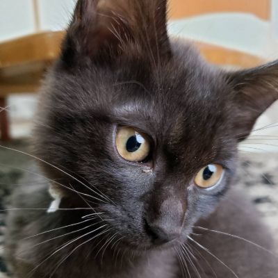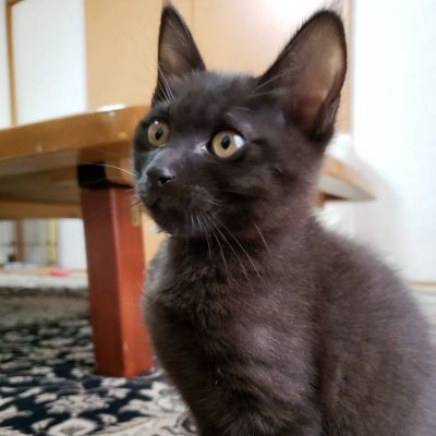 | 特徴(性格など) | 仮に「哲朗君」と呼んでいます。 黒猫ですが、白い毛がちょこちょこ出ていて、ふわふわの毛並みです。 保護当初は一人きりでビビッていましたが、他の保護猫と暮らすようになり、元気に遊ぶようになりました。 今では私の膝に乗って、ゴロゴロです。 兄弟ではありませんが、同居中のこしょう君と仲良しです。 |