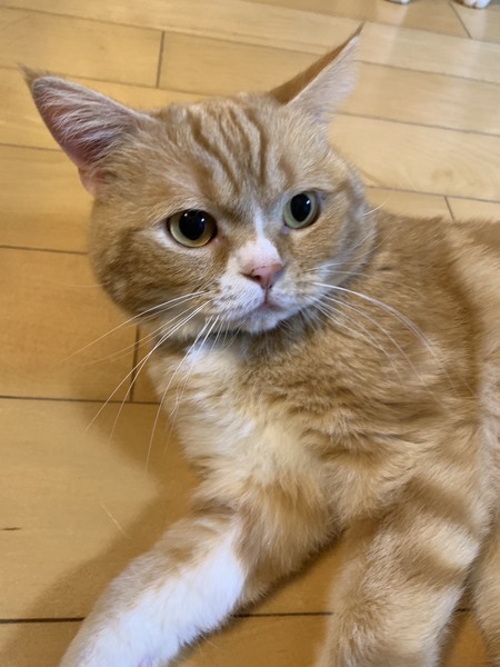 | 特徴(性格など) | 色柄はレッドタビーアンドホワイト。 人気のふてニャンそっくりの可愛い顔立ちです。 人が好きで 甘えん坊、のんびり屋さんの男の子です。 痩せ気味です。 下痢が続いてるので 預かり宅で療養食で様子みています。 他は問題なく元気に過ごしています。 |
