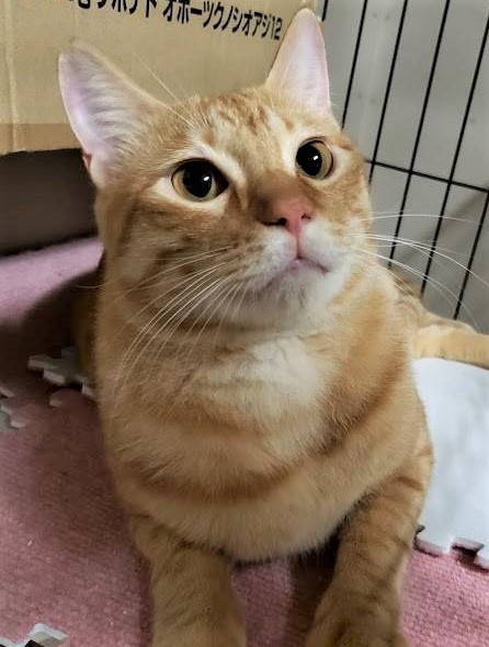 | 特徴(性格など) | 仮名: ハニー君(オス) 毛色: 茶トラ 性格: 元気いっぱい活発な男の子です。遊びが大好き、良く走るので食いしん坊です。お腹をみせて甘えたりします。遊んで貰うと嬉しくて甘噛みしたりします。ご飯がほしくなるとハスキーボイスで催促してくれますよ。 |