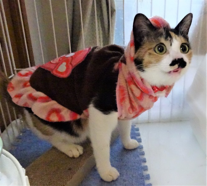 | 特徴(性格など) | 仮名: エルサちゃん(メス) 毛色: 三毛猫 性格: 猫初心者でも会ったときに抱っこ出来るような人馴れした子です。 甘えん坊で、姉妹のアナちゃんとは産まれた時から一緒です。 助け合ってきた子達ですので、離せません。 2匹一緒でお家に迎えて下さる方を希望しています。 丸い目と口ひげがとても可愛いです。 のみとり済 検便済 駆虫済 3種混合ワクチン済 避妊手術済 猫エイズ・白血病ウィルス検査は共に陰性です。 |