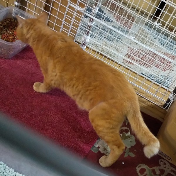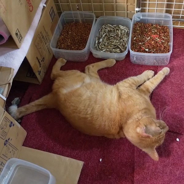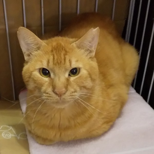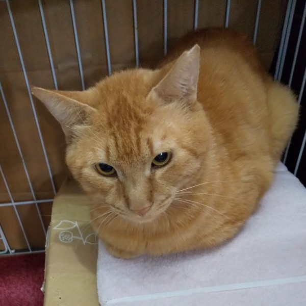 | 特徴(性格など) | 仮名:コガネ 毛色:茶トラ 瞳の色:茶 尻尾:長めのカギ尻尾 性格・特徴:最初だけダンボールハウスに隠れていましたが、しばらくすると出てきました。 問題なく触れて攻撃性もないので、猫の飼育が初めての方でも大丈夫です。 が、あまりスキンシップをとらずに育ったため、スリゴロとまではいきません。 まだ甘え方がわからないだけで、馴れれば人に甘える喜びも芽生えてくるでしょう。 これまで辛い思いをしてきた分、愛情たっぷりに育ててくれる方を希望します。 ボス猫のような強そうな顔ですが、マイペースでおっとりしていています。 むくむくの大きな猫が好きな方にはたまらなく魅力的です。 兄妹とじゃれ合って遊ぶ無邪気な一面もあります。 他の猫にもやさしいので、先住猫のいるお宅でも大丈夫です。 システムトイレのしつけ済み。 左耳に桜カットあり。 ケンカのせいか、右耳の先にも少し切れた部分があります。 1匹飼いでも大丈夫そうですが、仲がいい兄妹と2匹で迎えていただけるとありがたいです。 |